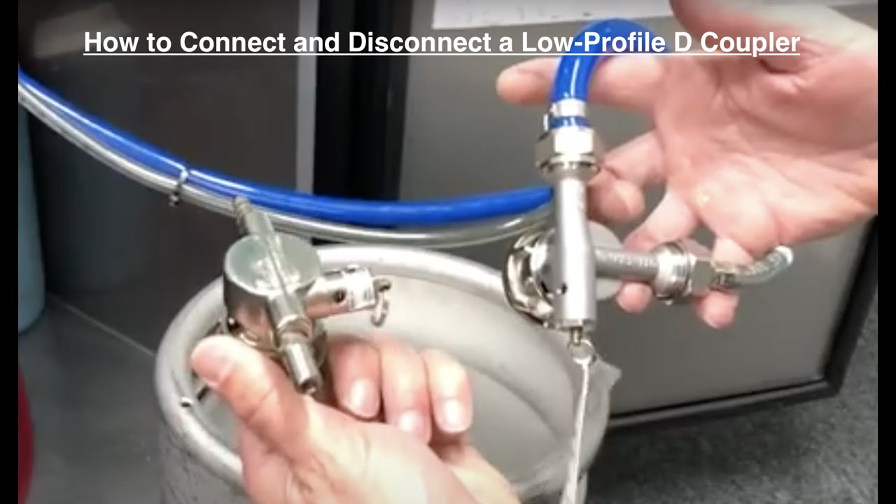 You will need to put the coupler on the keg, place one hand on the keg and the other on the coupler, and subsequently, turn the coupler about a quarter turn, then pull the handle out and push it down.